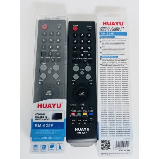 Универсальный пульт дистанционного управления HUAYU RM-625F предназначен для телевизоров фирмы Samsung. Он очень прост в использовании, не требует настройки и сразу же готов к использованию.