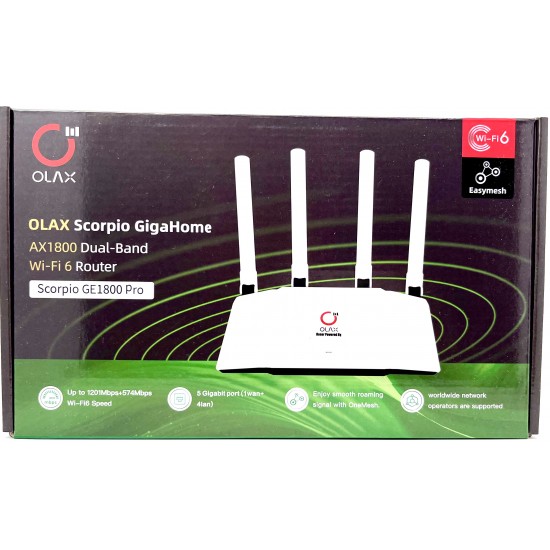 Теги: Беспроводной роутер Olax Scorpio GigaHome Wifi 6 GE1800 Pro двухдиапазонный 2.4G 5.8G, 101222, Olax Scorpio, Сетевое оборудование